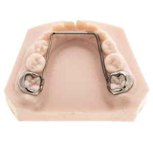 The Motion is an orthodontic device developed to correct a bite without removing permanent teeth when teeth have erupted incorrectly. With an effect similar to headgear, but without the use of a bulky appliance, the Motion pushes upper teeth back to create a corrected bite prior to the addition of braces.
