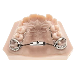 First, your orthodontist will create an anchor point, most commonly with a lower Essex Appliance, a passive lingual arch, full mandibular fixed appliance, or mini-screws. A Motion arm is then attached to the upper teeth on both sides of your mouth.